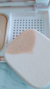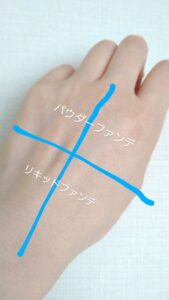 左半分にはミノンUV、右半分にはアンドビーの下地。その上にパウダーファンデを乗せました。ツヤ感もほどよく出ます。